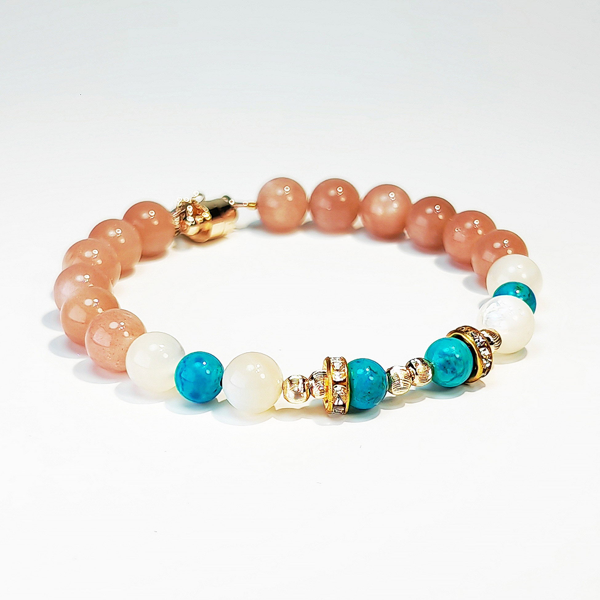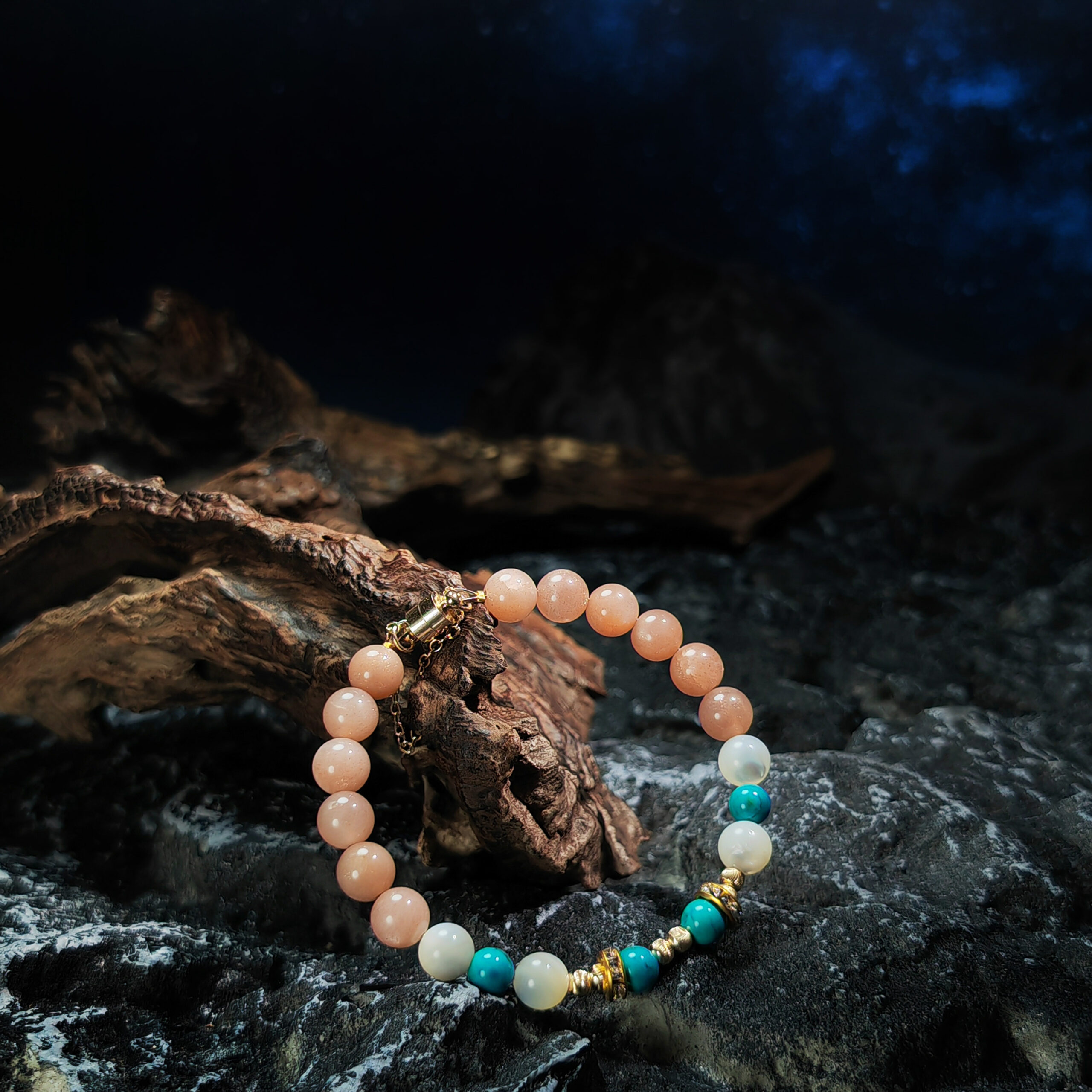 Solar Flow is designed for those who are ready to radiate from within—balancing emotional fluidity, authentic expression, and inner confidence. By uniting Sunstone (Fire Force), Shell Beads (Water Force), and Turquoise (Wood Force), this bracelet awakens your expressive power while keeping your emotional current soft and steady.